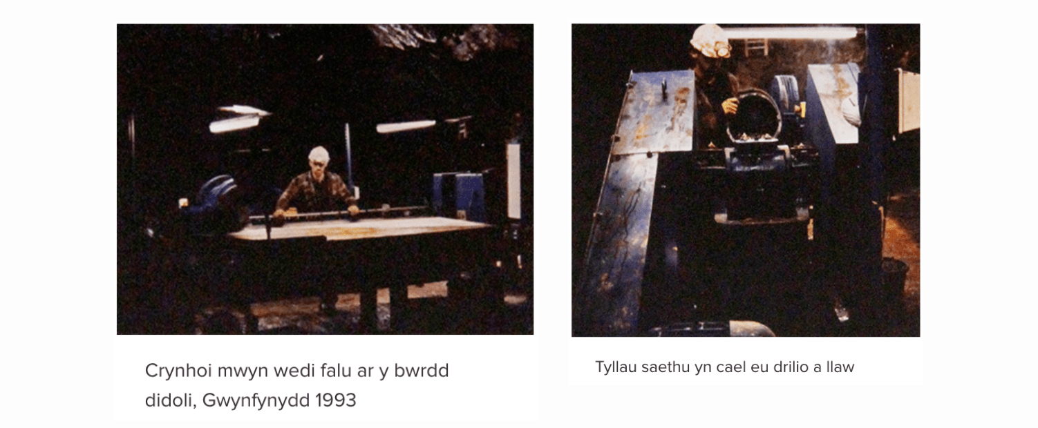 Mae’r un technegau mwyngloddio sylfaenol yn cael eu defnyddion heddiw (1993) fel ag yn y ganrif ddiwethaf ere u bod wedi’u gwella’n sylweddol gyda datblygu gwell ffrwydron a pheiriannau modern i weithio ac I drafod y graig.