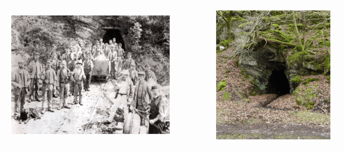 Below shows the workers at the Clogau mine and the entrance to the Clogau mine today